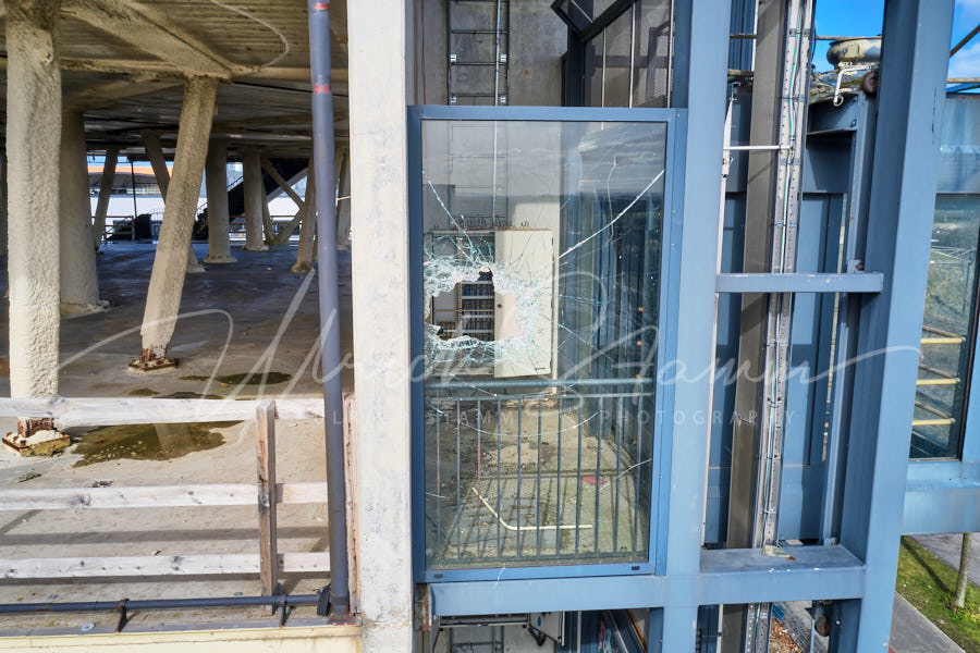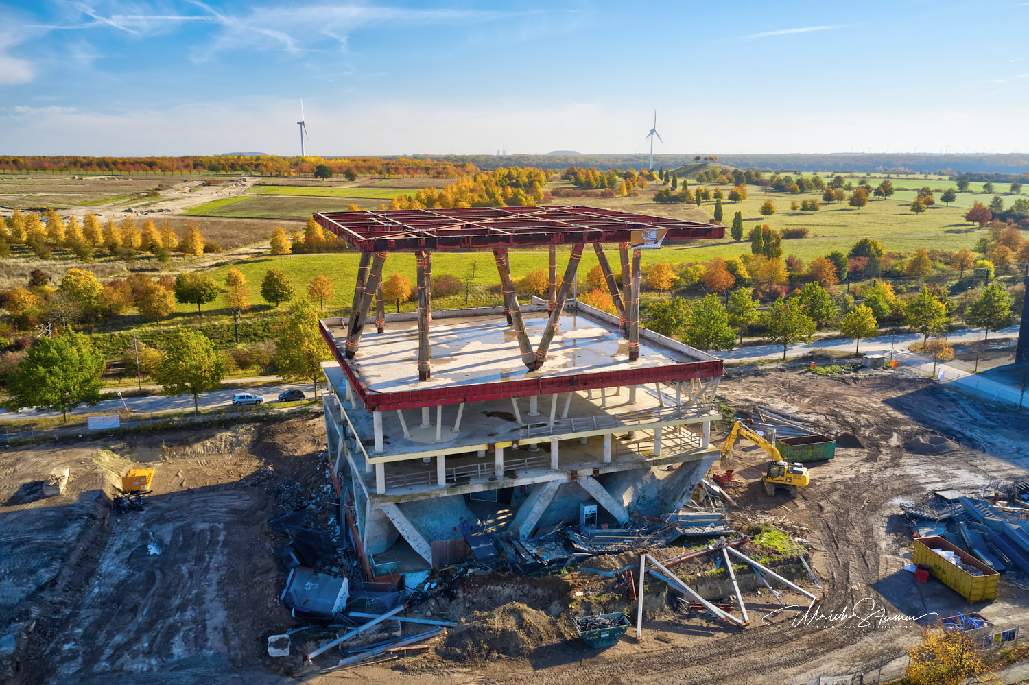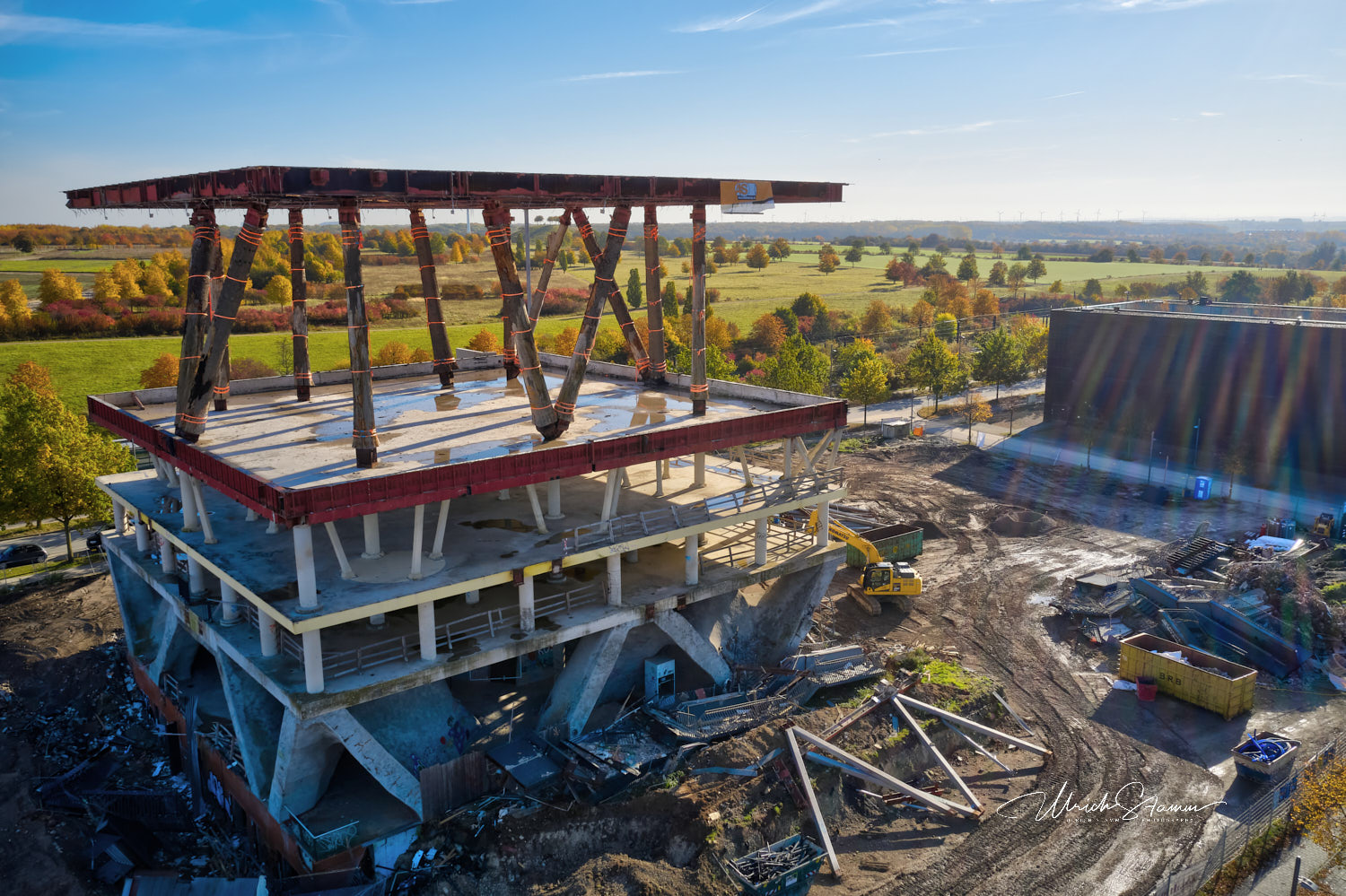 Ein besonders gravierender Einschnitt war ein Brand im Jahr 2014. Nach Angaben des am späteren Umbau beteiligten Bauunternehmens wurde dabei die Dachkonstruktion weitgehend zerstört. Damit verschärfte sich der Sanierungsbedarf erheblich: Witterungsschutz, Tragwerksreserven und Brandschutz mussten unter deutlich schlechteren Rahmenbedingungen neu bewertet werden