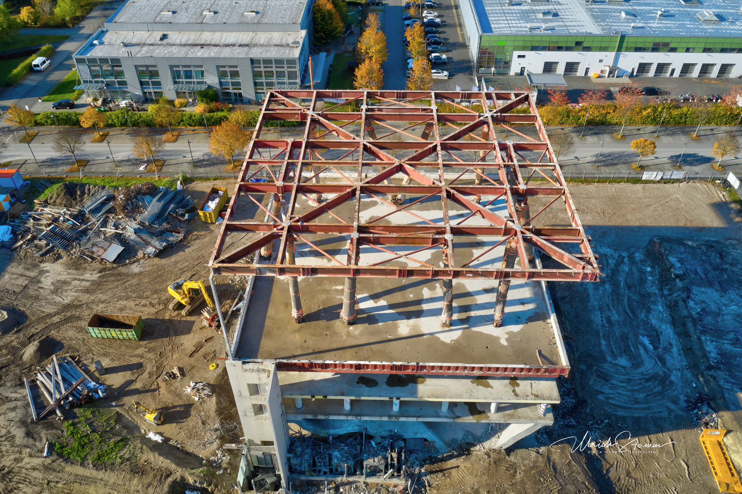 Für die Umsetzung wird ein Generalunternehmen genannt: Köster berichtet 2024 über die Revitalisierung nach mehr als 20 Jahren Leerstand und nennt dabei explizit den Brand 2014 sowie die Beauftragung für den Umbau.