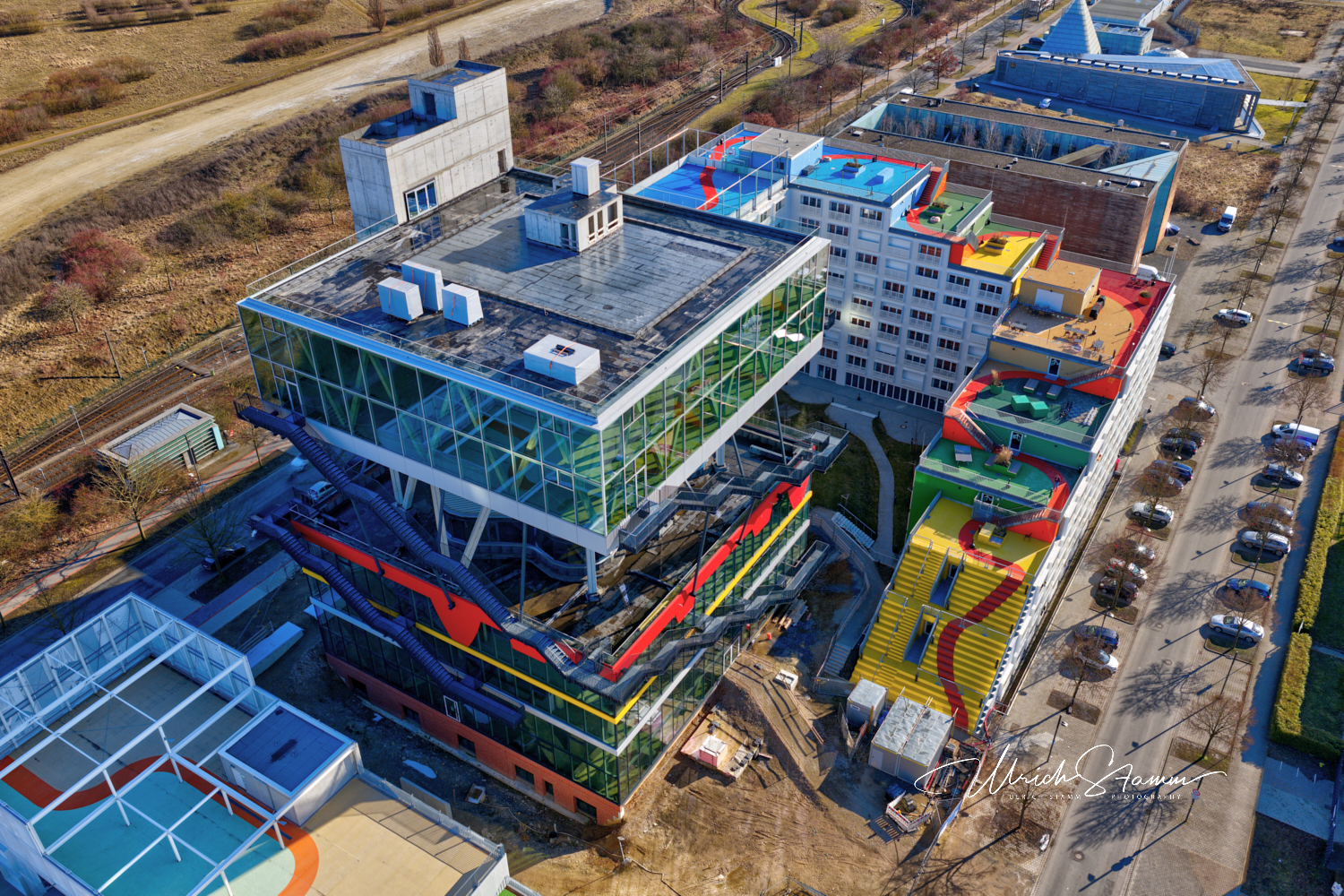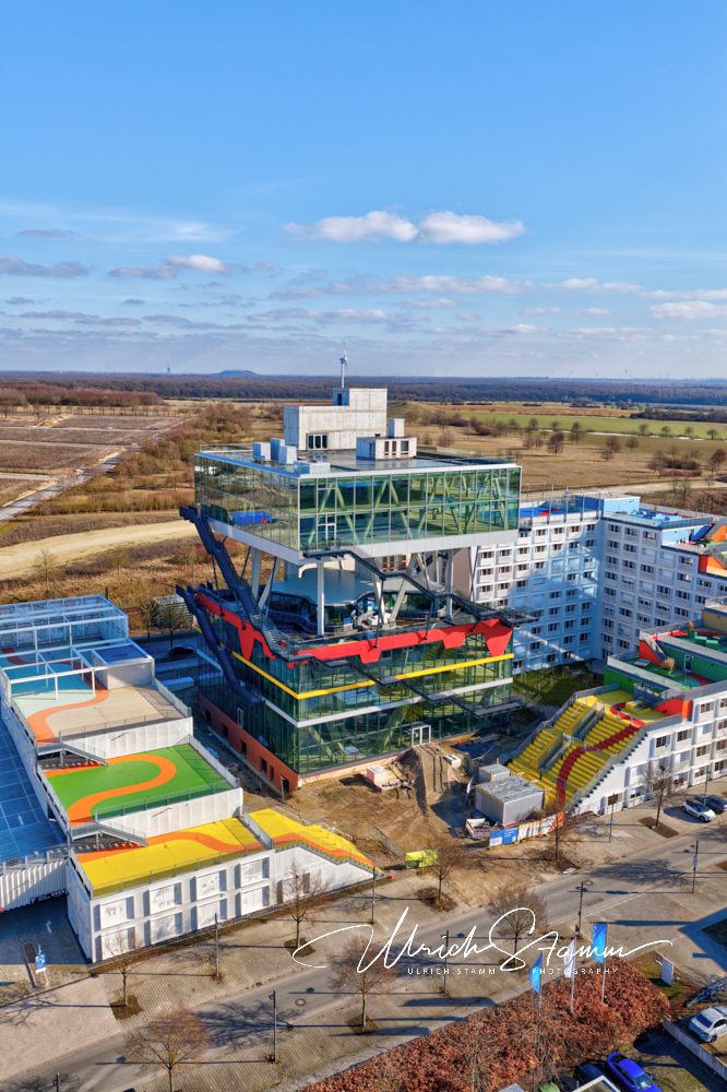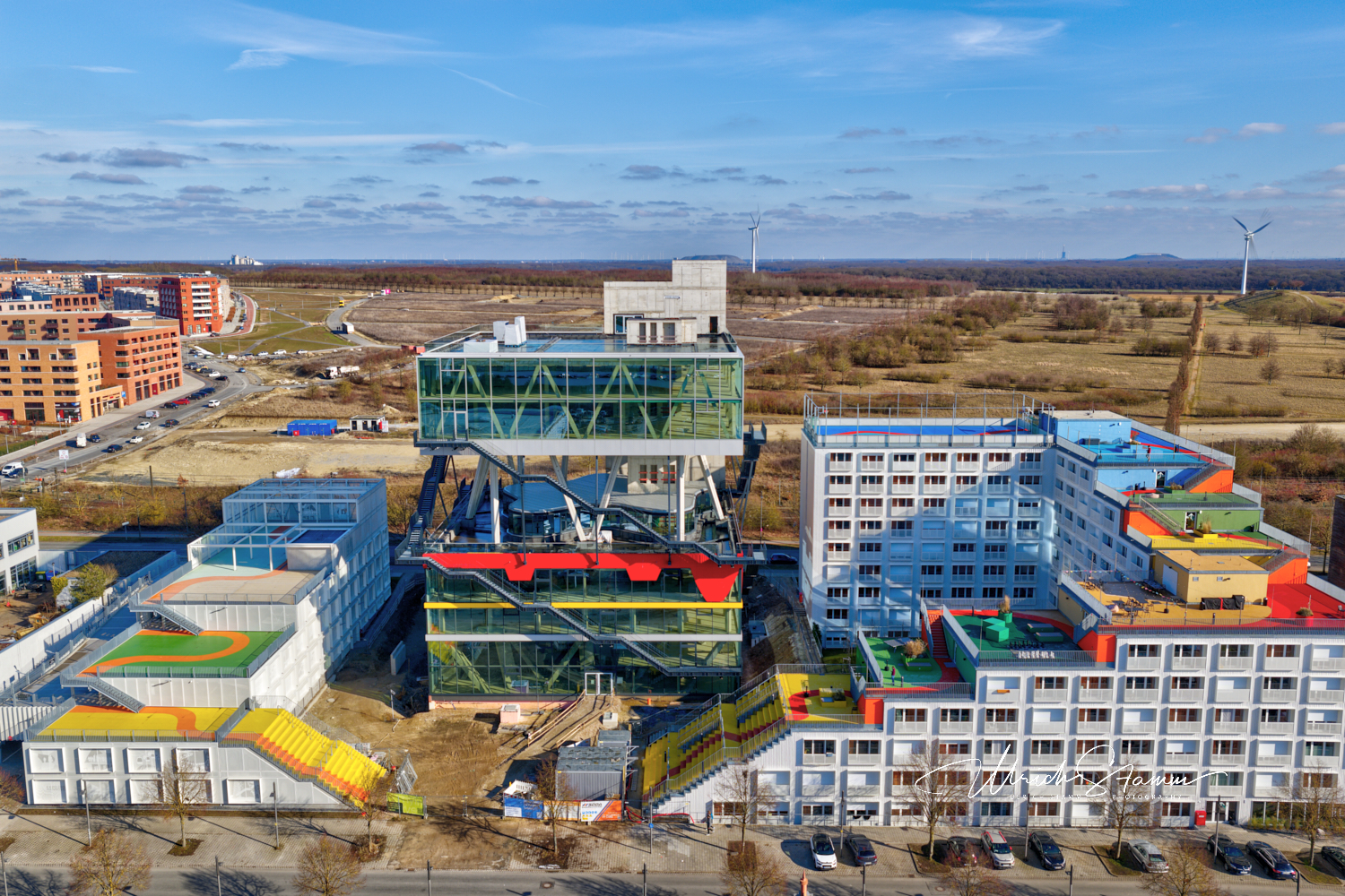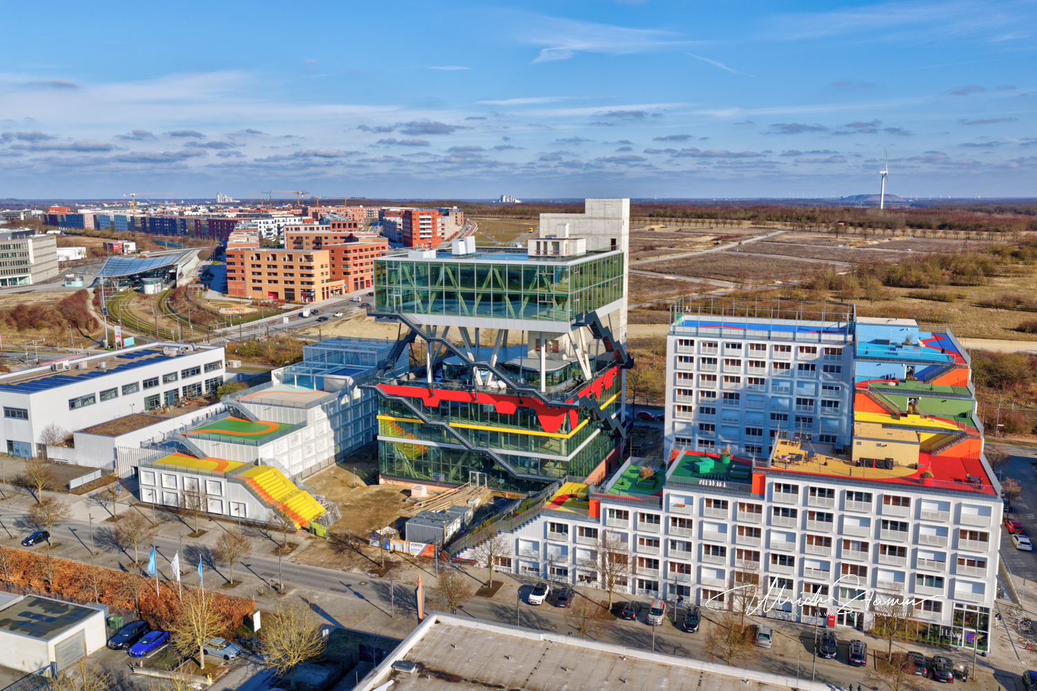 Der Umbau des früheren niederländischen EXPO-Pavillons zum heutigen iLive/Hylive-Komplex ist im Kern eine dreiteilige Geschichte: erst internationale Aufmerksamkeit (EXPO 2000), dann jahrzehntelanger Stillstand mit Verfall und Brandfolgen (u. a. 2014), und schließlich die Rückkehr über ein Campus-Modell mit Wohnen, Arbeiten und Serviceangeboten (Baubeginn 2023, Fertigstellungsschritte bis 2025). Damit wird aus einem lange problematischen Symbol ein wieder nutzbarer Bestandteil des Standorts – nicht als Museum der EXPO, sondern als funktionierender Ort im Alltag.