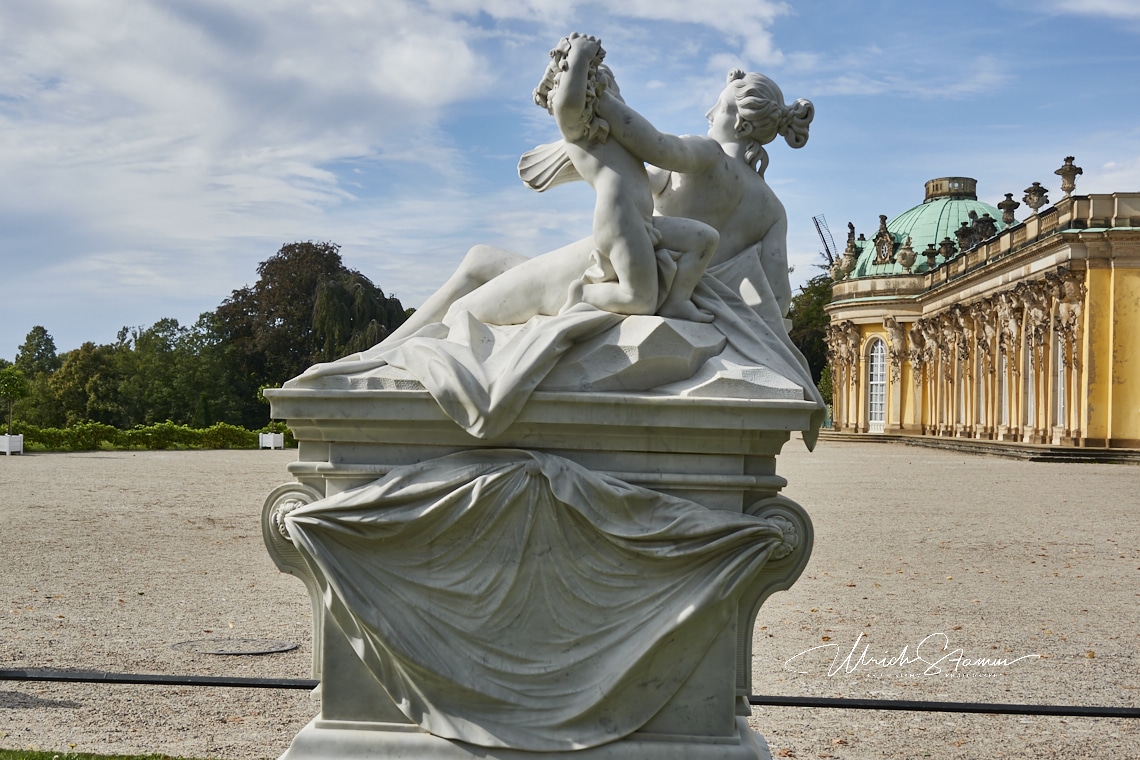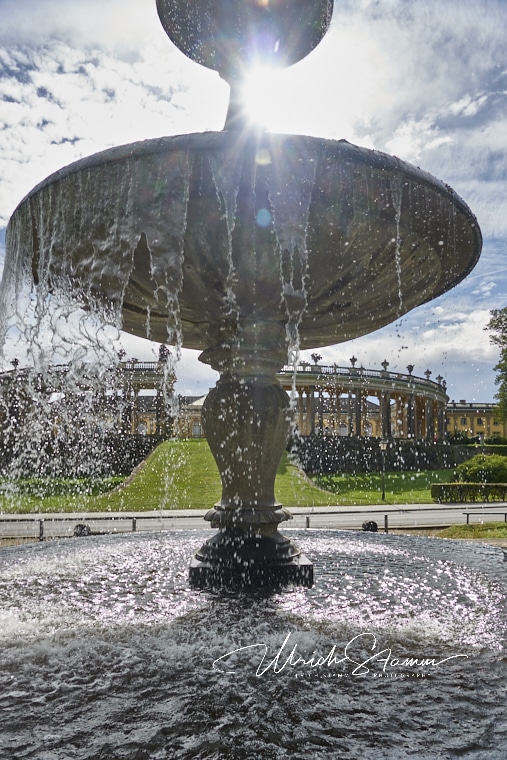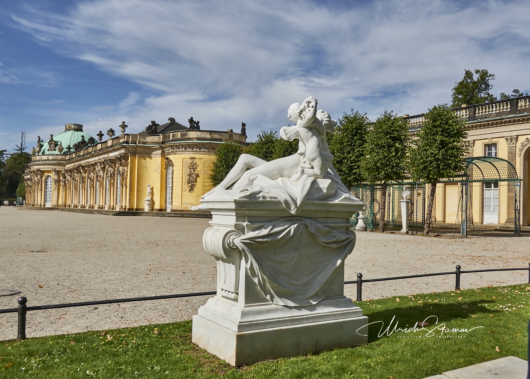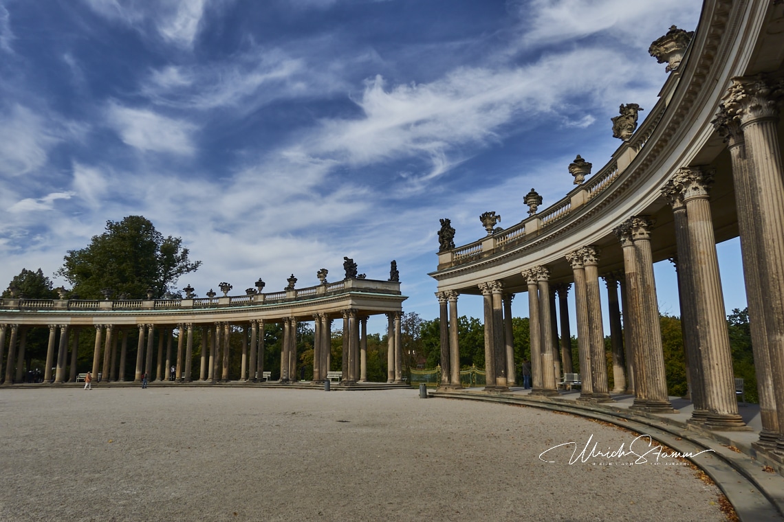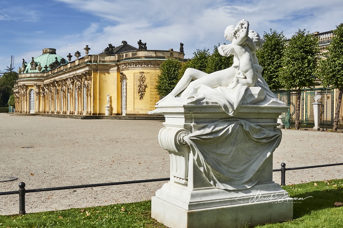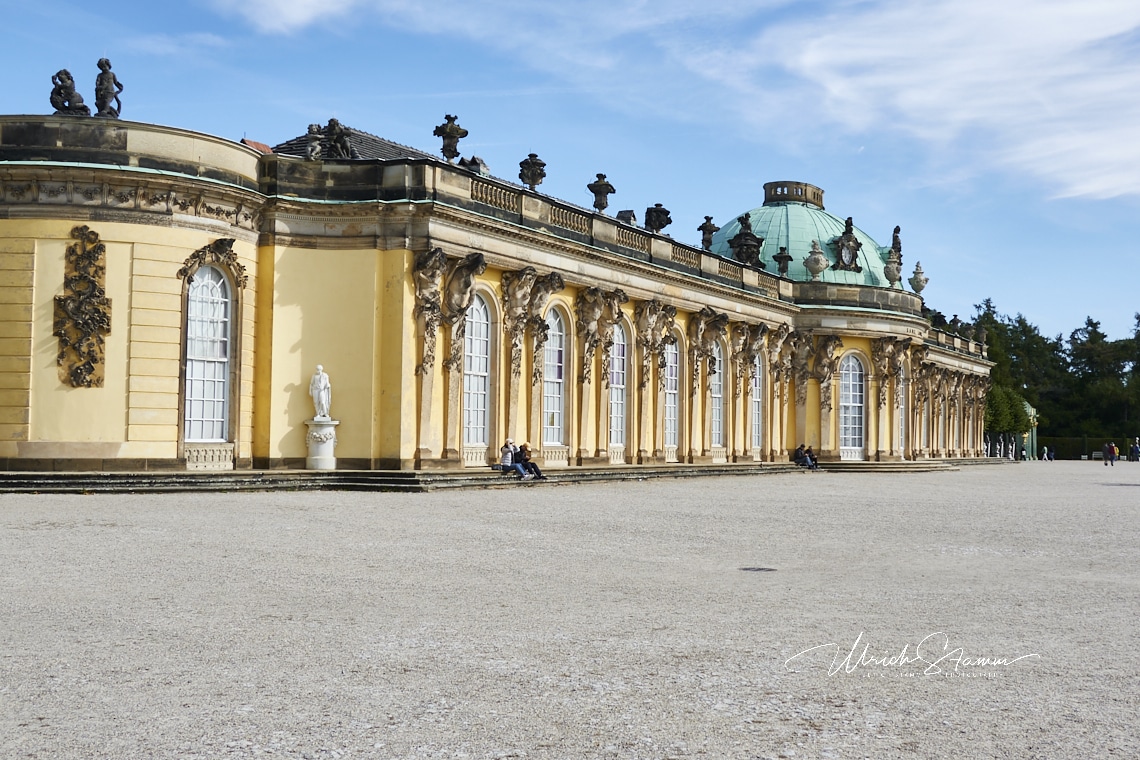 Auch die Wegeführung ist Teil des Konzepts: vom Schloss führen Terrassen abwärts, Grünachsen verlaufen zur Allee Richtung Neues Palais, Sichtachsen eröffnen fernen Bezug zu weiteren Bauwerken.