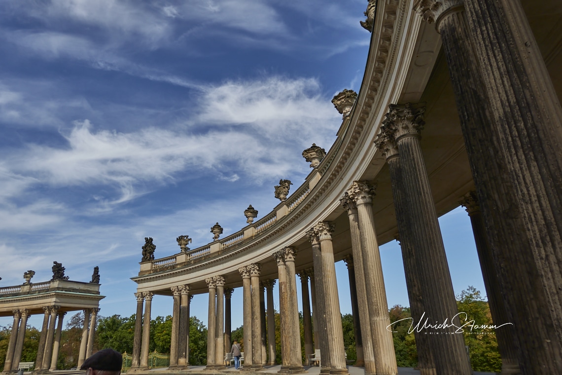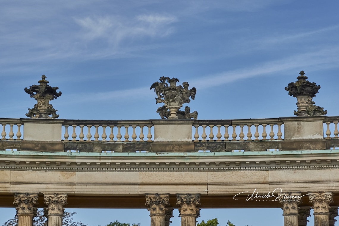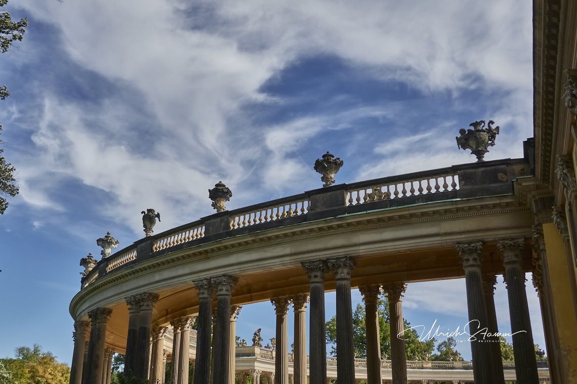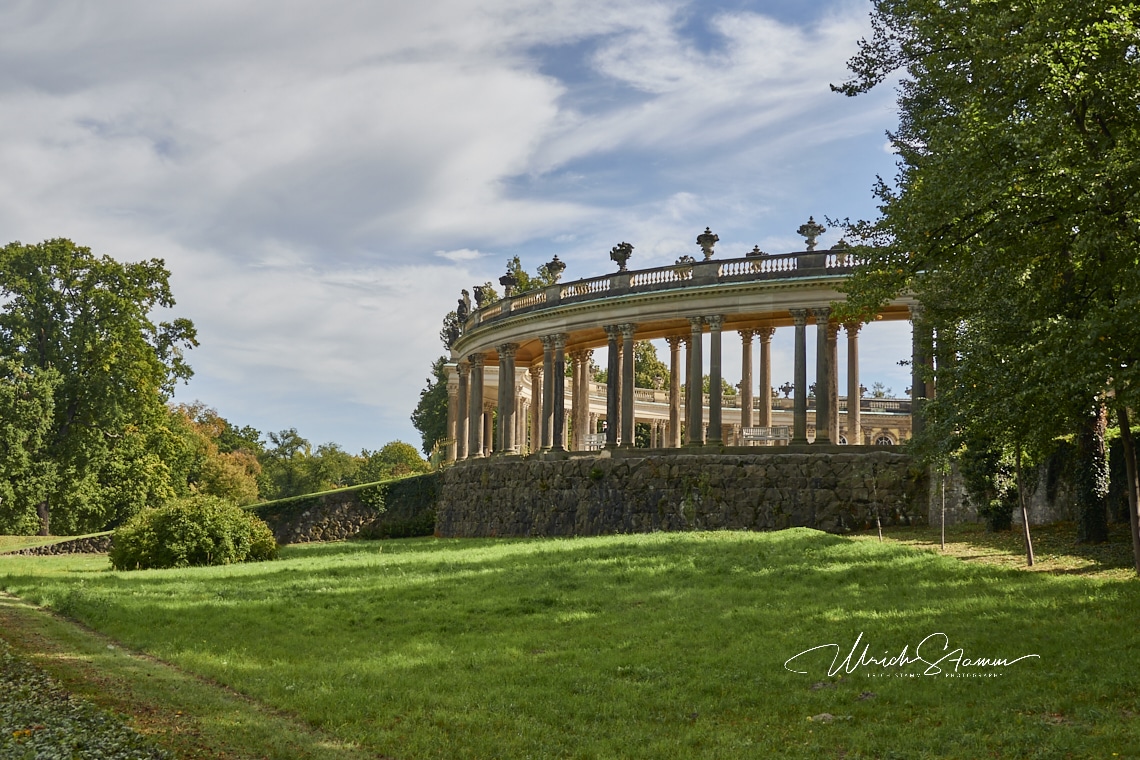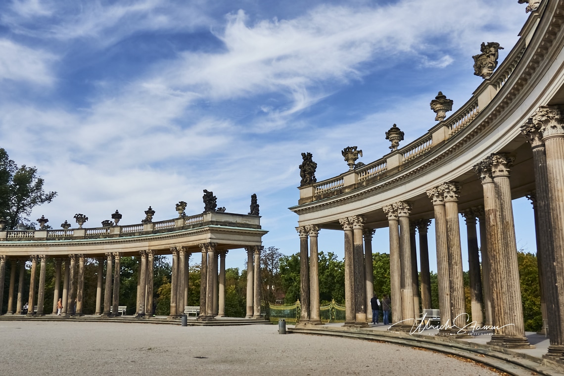 Auch die Wegeführung ist Teil des Konzepts: vom Schloss führen Terrassen abwärts, Grünachsen verlaufen zur Allee Richtung Neues Palais, Sichtachsen eröffnen fernen Bezug zu weiteren Bauwerken.