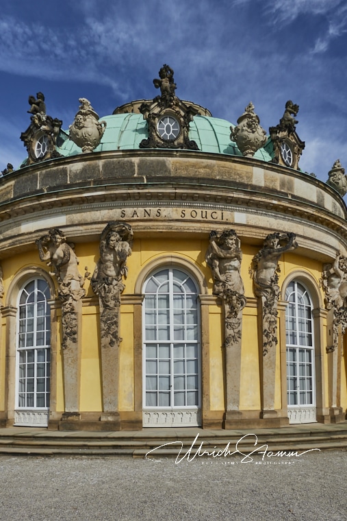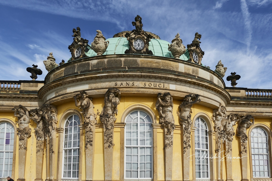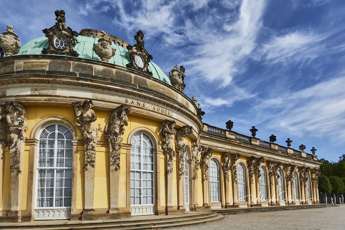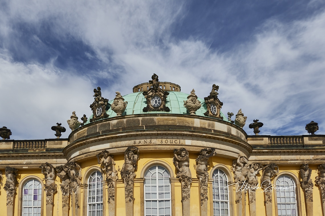 Der Name „Sanssouci” stammt aus dem Französischen („sans souci“) und bedeutet „ohne Sorge“ oder „sorgenfrei“ – eine bewusste Absicht Friedrichs, das Schloss als Rückzugsort fernab von Hofzeremonien zu nutzen.