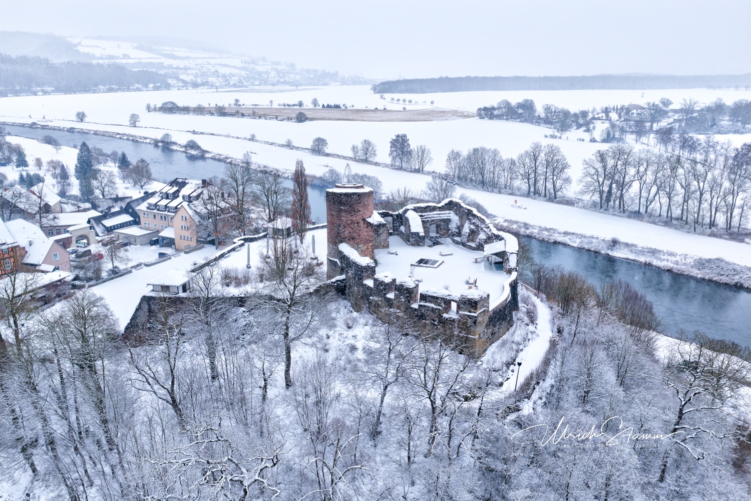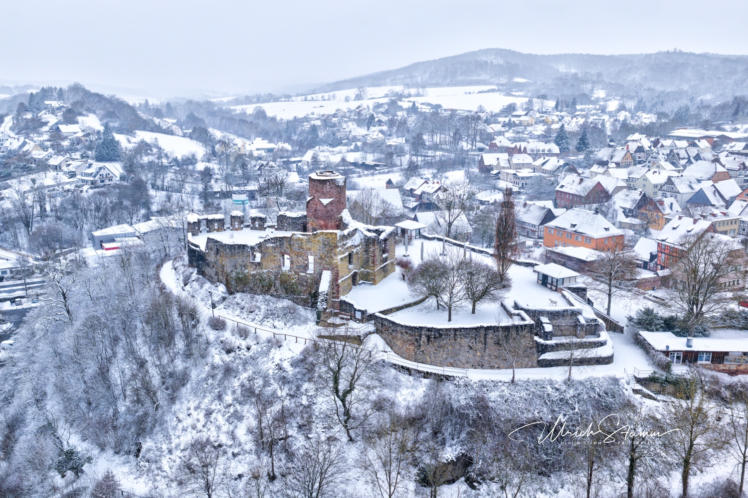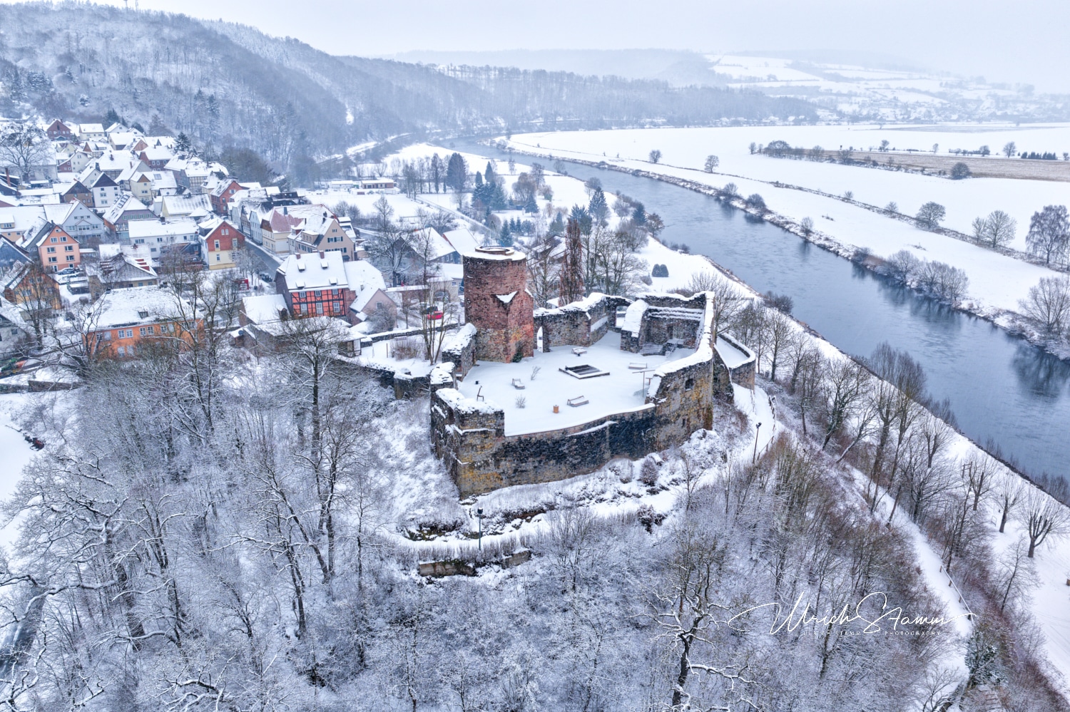 Geschichtlich ist Polle klar einzuordnen: Die Anlage entstand im 13. Jahrhundert, wurde im Dreißigjährigen Krieg schwer getroffen und 1641 von schwedischen Truppen zerstört – seitdem blieb sie Ruine. Genau diese „Ruinenform“ ist im Winter ein Vorteil: Man kann das Ziel schnell erlaufen, man braucht kein großes Besucherprogramm, und die Aussicht ist oft das eigentliche Highlight.